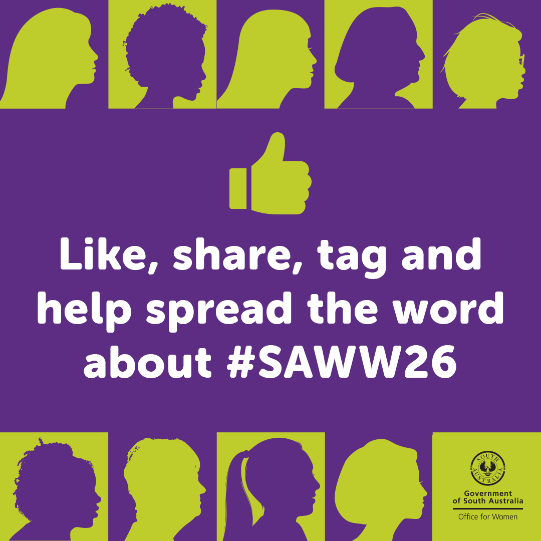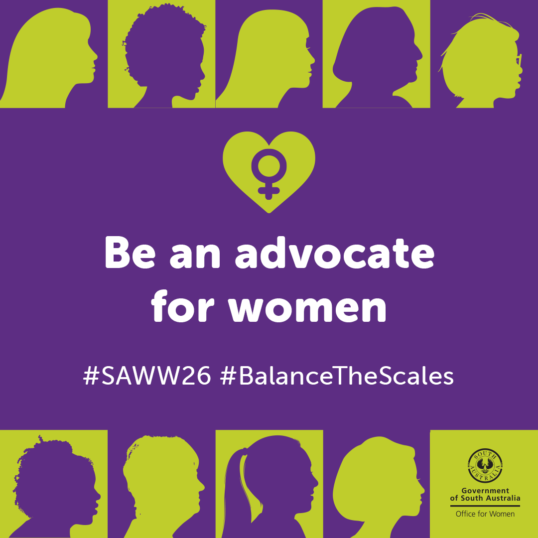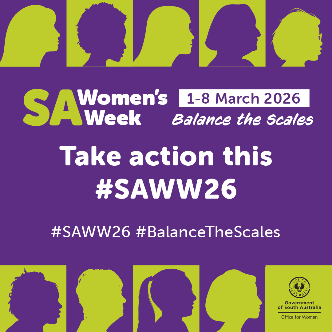 South Australian Women's Week from 1 to 8 March 2026 celebrates the achievements and contributions of women and girls in South Australia, sparks dialogue and encourages everyone to take action to advance gender equality in our state.